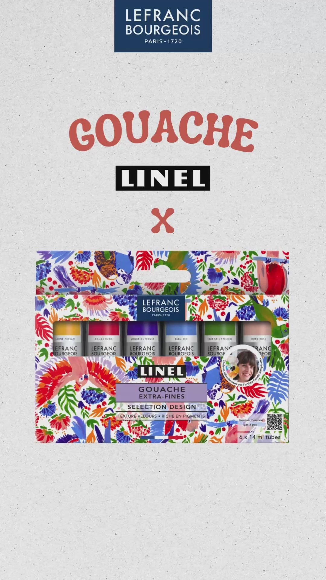 The Set Designer, designed with artist Carole Rampinetta, invites you to create colourful birds using Linel extra-fine gouache. An exercise in pattern, precision and colour mixing. Creative since childhood and passionate about theatre and circus arts, which she has been practising since the age of 8, Carole loves to tell stories and bring emotions to life both on stage and with her pencils and brushes. A lover of paper, Carole works in a traditional manner with gouache, watercolour and ink. This set consists of six shades: Rex Blue, Ultramarine Violet, Pink Ochre, Persian Yellow, Ruby Red and Saint-Michel Green. An ideal palette for creating colourful birds in the style of Carole Rampinetta. Watch the video and try Linel gouache!