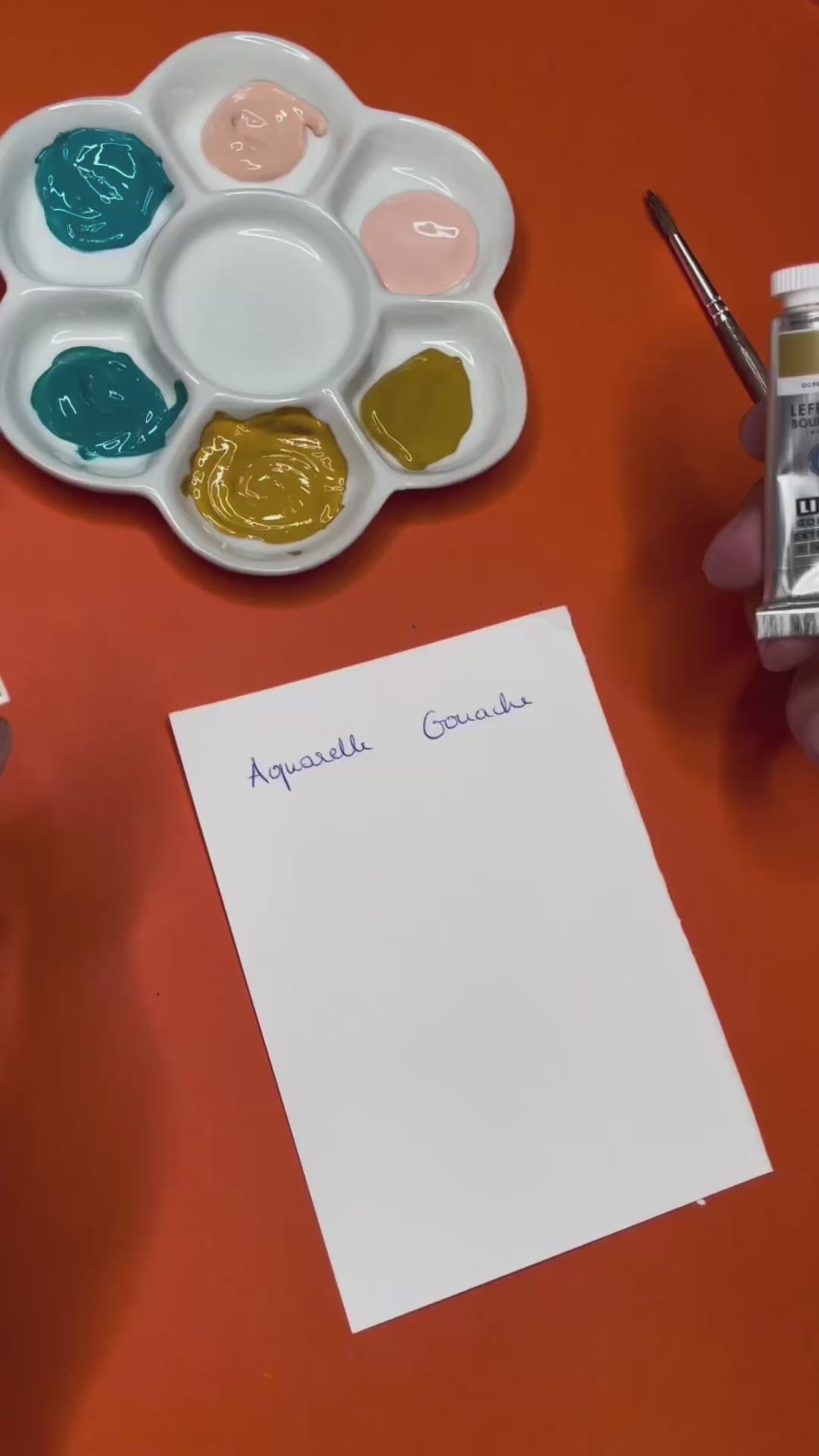 Gouache is rich in pigment, has a creamy texture, and a matte, opaque finish. Watercolour, on the other hand, is rich in pigment and transparent, making it ideal for glazing and creating gradients. Both can be diluted with water... but the results are completely different!