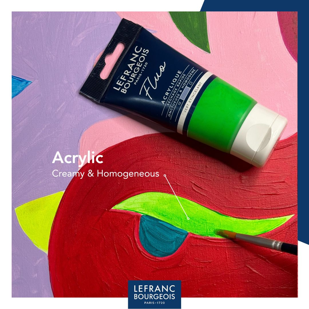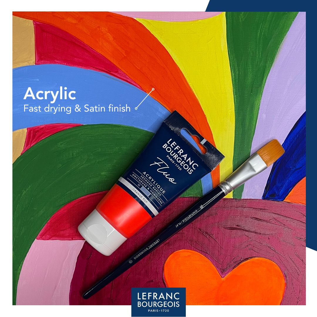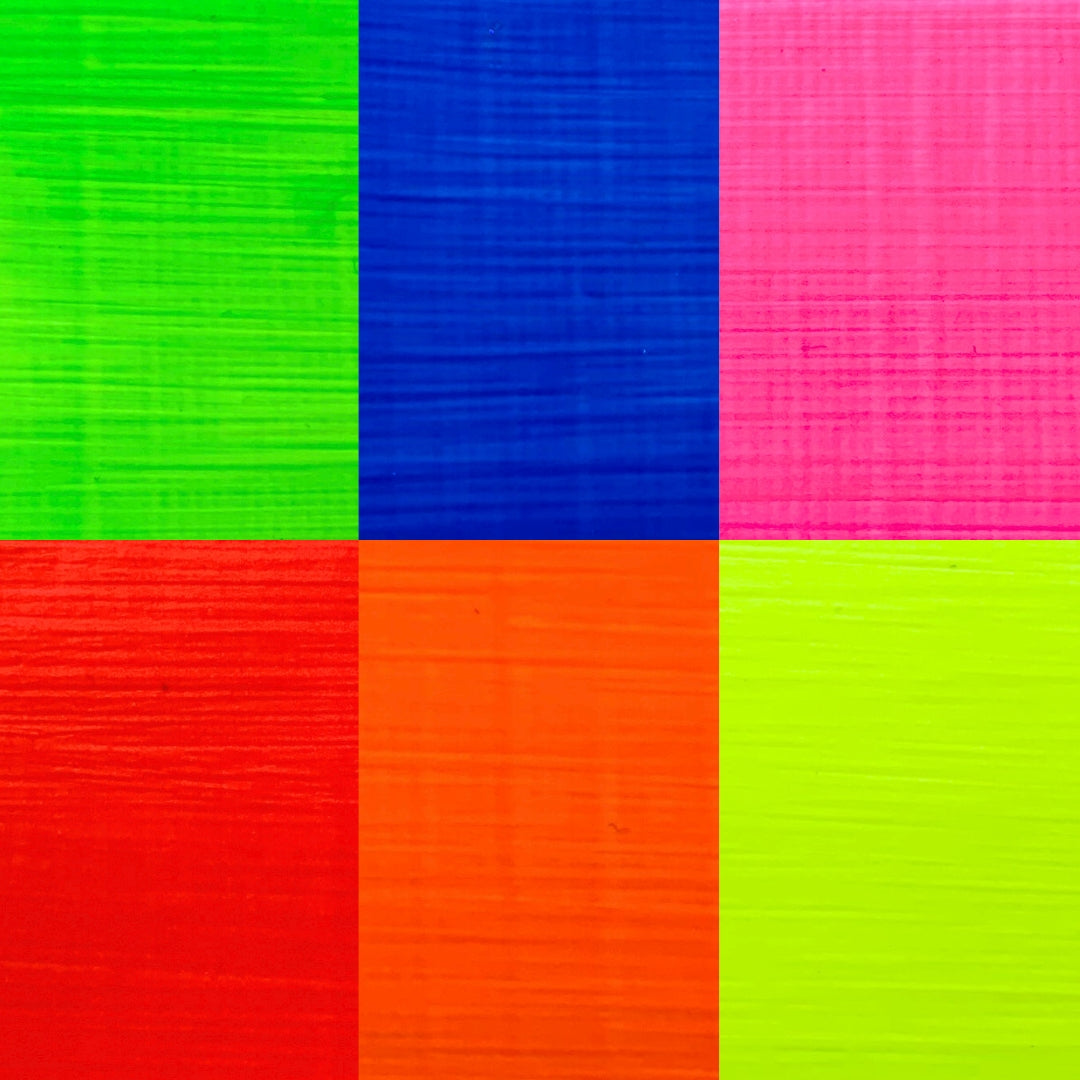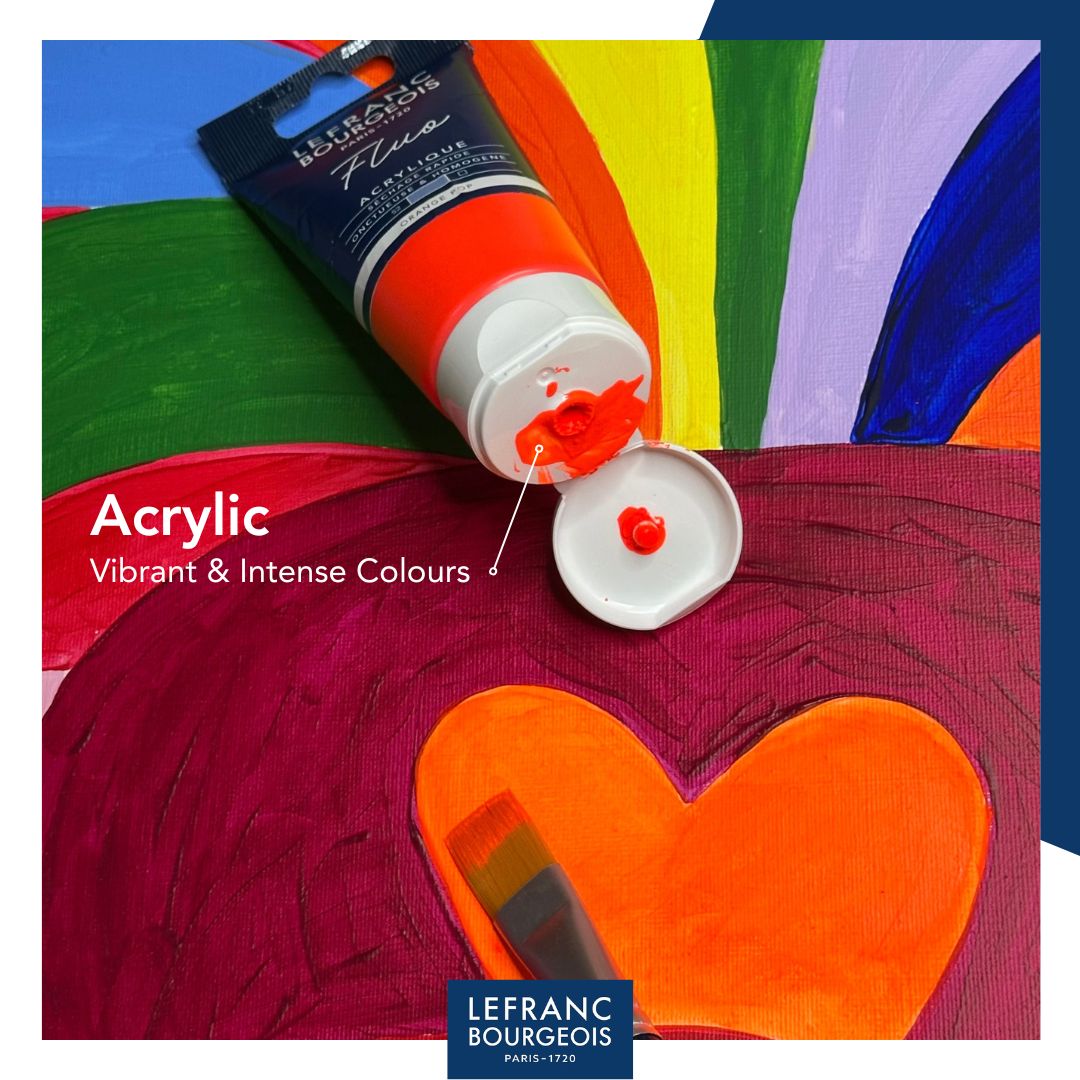 A Zesty Yellow, a Pop Orange, a Laser Red, a Kiss Pink, an Electric Blue and a Sparkling Green: six intense, ultra-bright fluorescent colours designed to energise your creations. Perfect for adding a vibrant burst of energy to your artwork. These paints are part of the Fine Acrylic range and feature a smooth, creamy and even texture, a satin finish, and fast drying properties. The set includes 6 × 20 ml tubes, ideal for discovering the fluorescent range or enhancing your palette with striking, luminous shades.